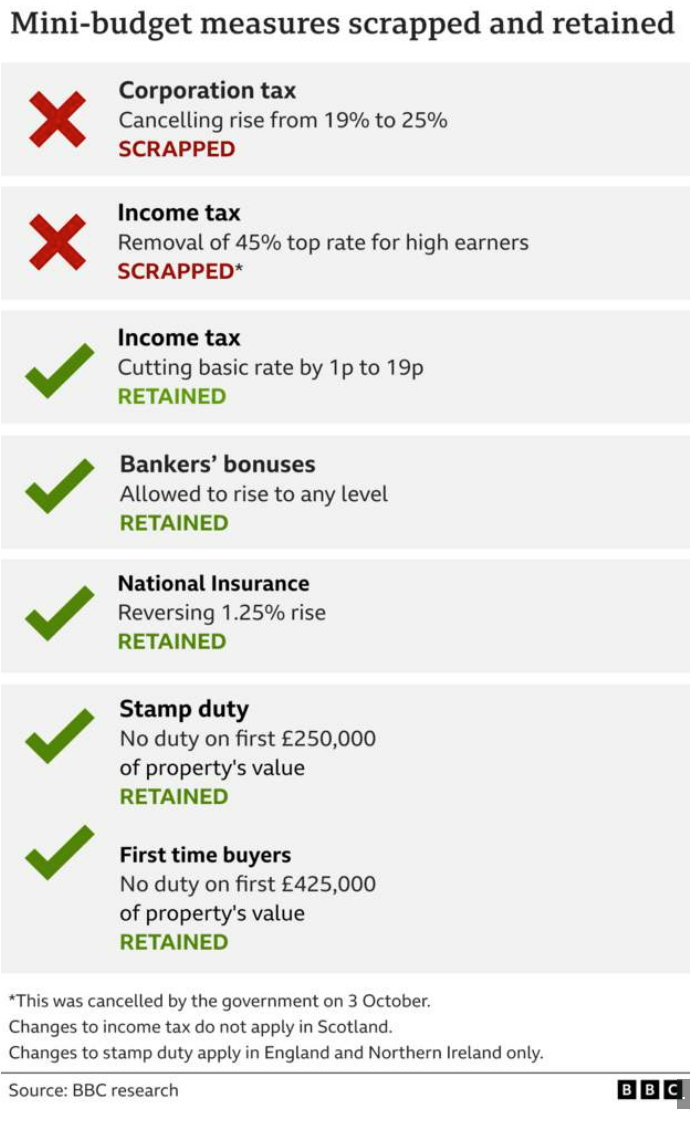 He said that the cuts to National Insurance and Stamp duty will go ahead. All other measures will be cancelled.